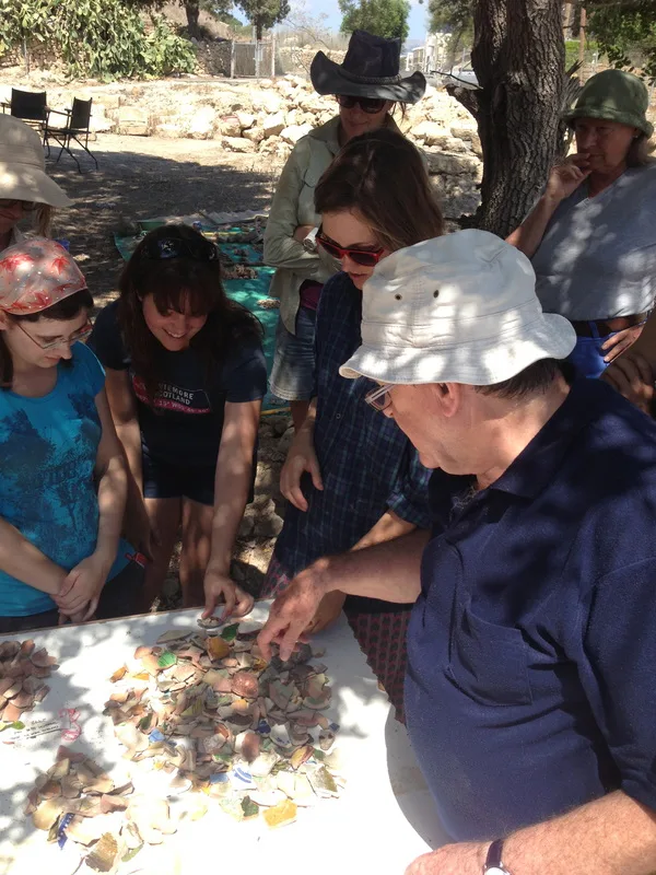 Over the following centuries, the site’s function shifted from public performance to local industry. Layers kept coming. Above the ancient theatre sat something unexpected: “a cluster of buildings that had housed a group of pottery manufacturers of the Crusader period… supplying Crusaders in the Holy Land.” The site became industrial, then global. “Many pieces of decorated, glazed pottery manufactured on our site have been identified there.”