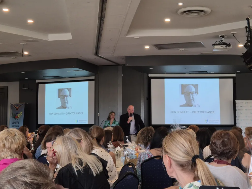 Stella Salpigtidis, Senior Speech Pathologist with the Peter MacCallum Cancer Centre, and Ron Bongetti, Director of HANCA since 2023 and survivor of head and neck cancer, took to the stage and presented a very informative and somewhat heartbreaking account of what people experience and how they deal with the situation once they are diagnosed with this type of cancer, and how they cope during the various stages of treatment.