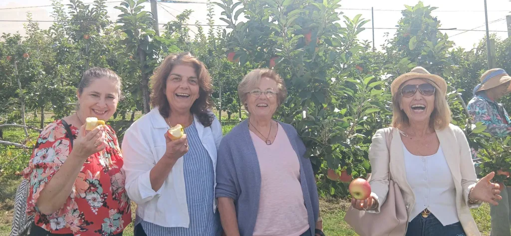 During their excursion, the group visited the iconic sandstone Three Sisters rock formation, picked fresh apples, and stopped at a scenic lookout which overlooked the surrounding landscape.