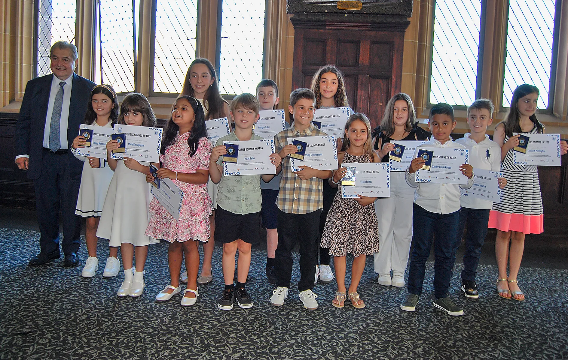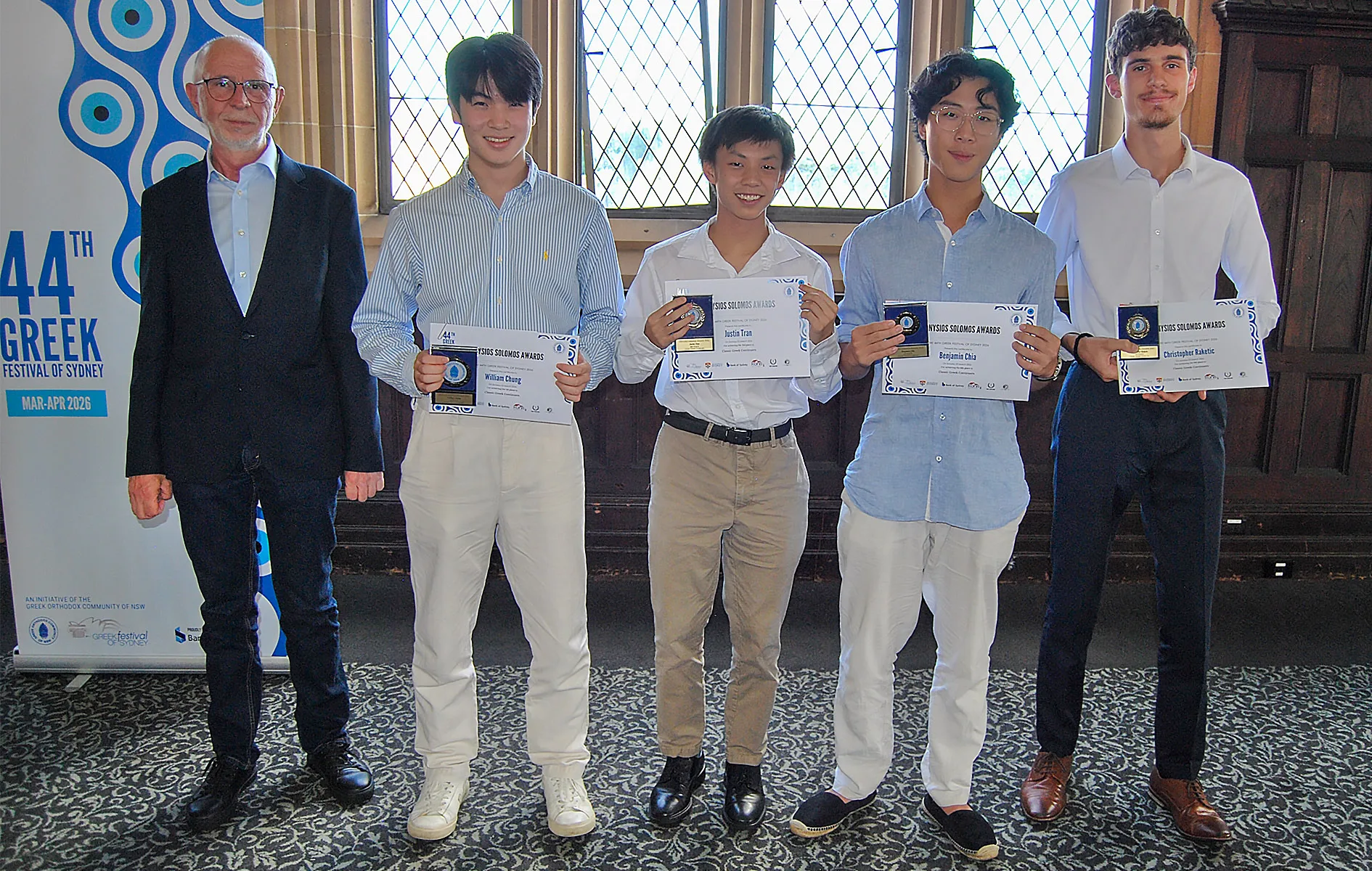 The success of the Dionysios Solomos Awards is made possible through the generous support of sponsors and community organisations committed to Greek language education. Special recognition was given to Jim Ronis OAM, major sponsor of the Dionysios Solomos Awards, and Harry Mavrolefteros, sponsor of the awards.