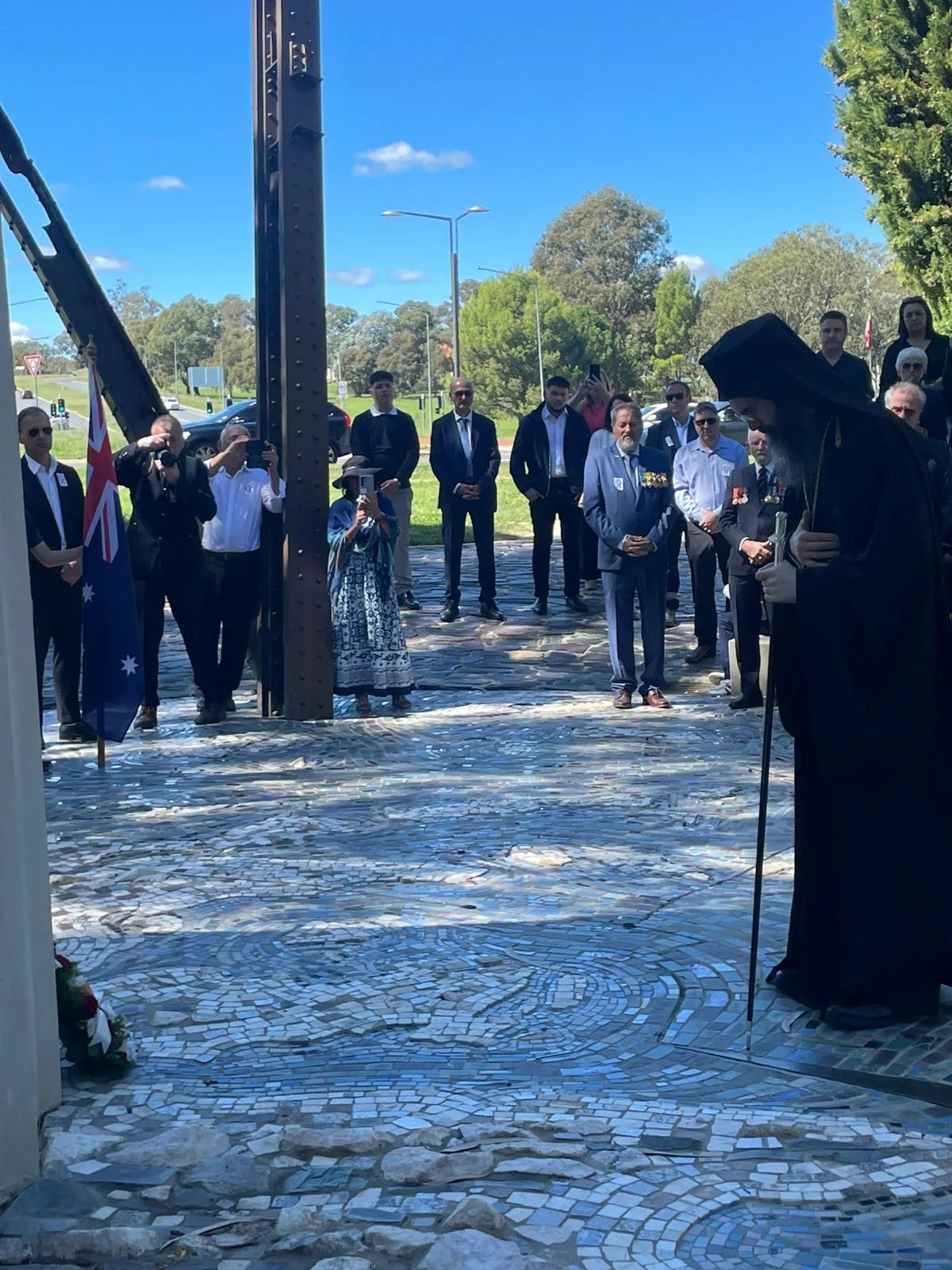 Wreaths were laid by the Greek Orthodox Archdiocese of Australia, the Embassy of Greece in Australia, the High Commission of the Republic of Cyprus, the Greek Orthodox Community and Church of Canberra, the Hellenic Club of Canberra, and a range of Greek associations across the ACT.