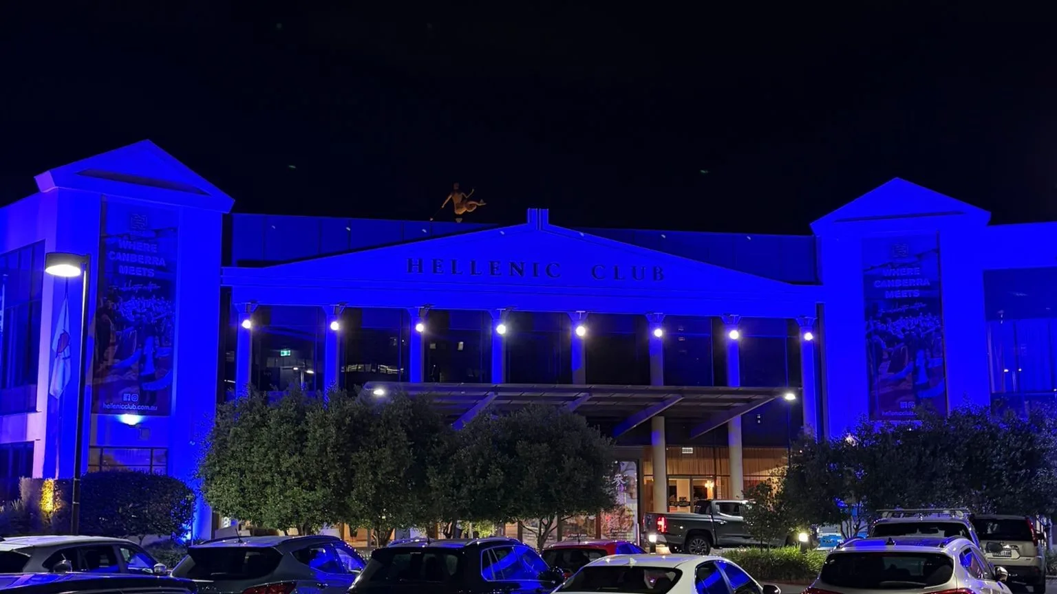 The coordinated display formed part of a broader “Blue Buildings Tour,” attended by Ambassador of Greece to Australia Stavros Venizelos, alongside Mr Loukadellis and members of the Hellenic youth community from across Australia.