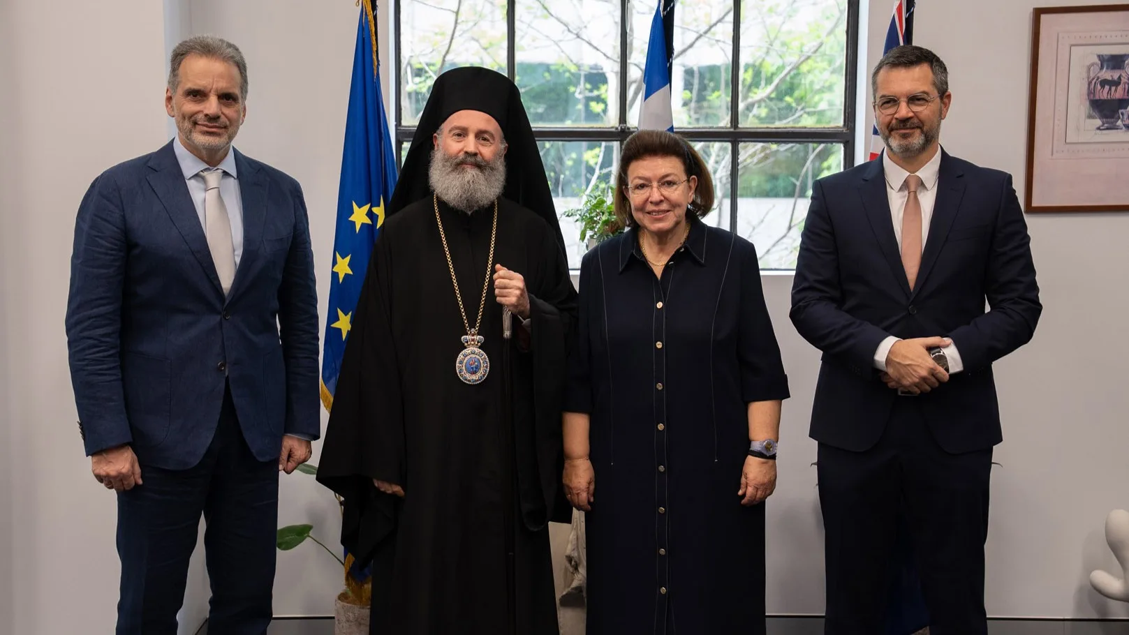 On Monday, 6 October 2025, Greece’s Minister of Culture, Lina Mendoni, paid an official visit to the Consulate General of Greece in Sydney, accompanied by His Eminence Archbishop Makarios of Australia.