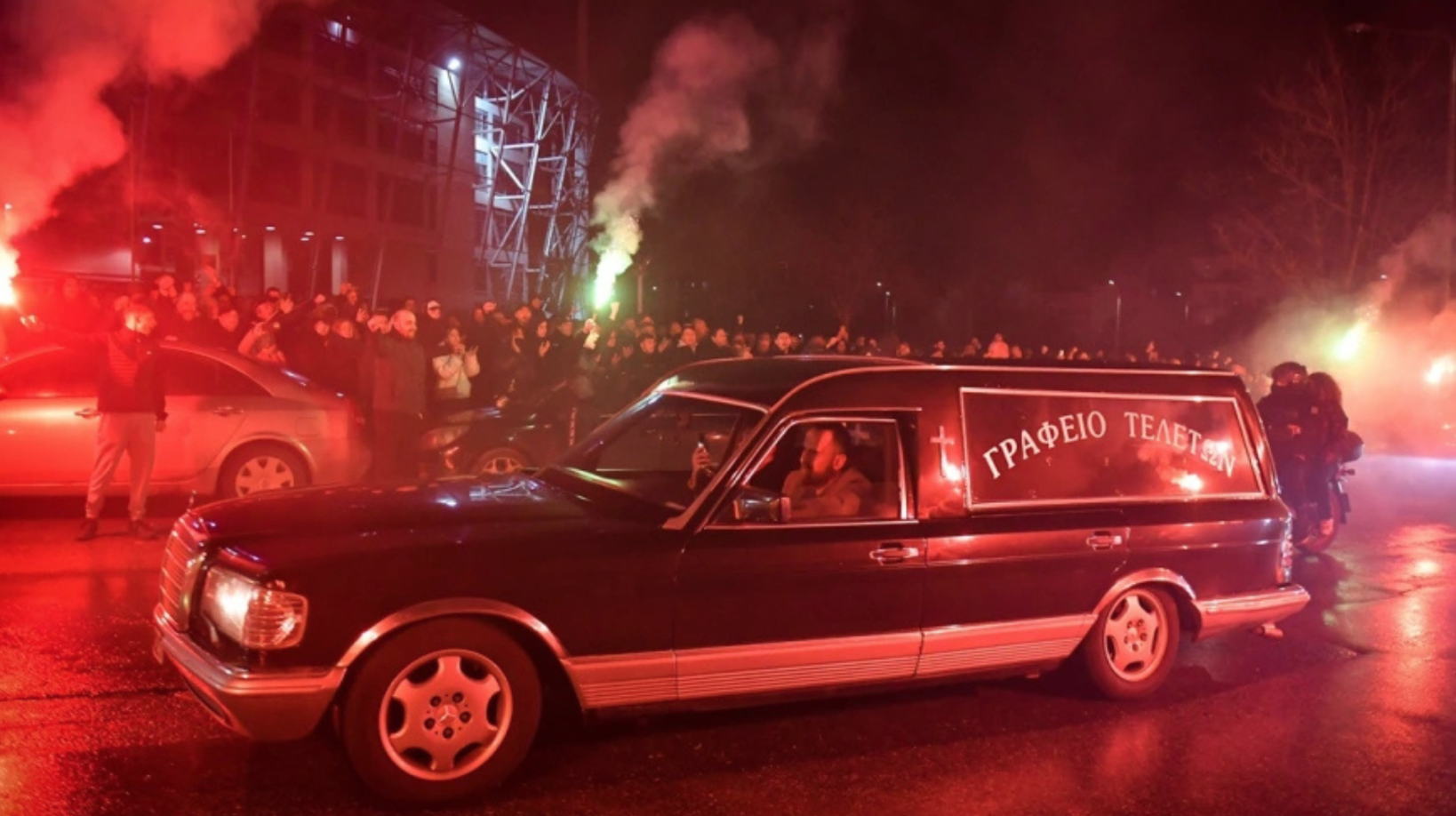 Supporters welcomed the aircraft on its arrival and escorted the coffins in a motorcycle procession to Toumba Stadium, chanting slogans such as “Immortal” and “Brothers, you live on, you guide us.”