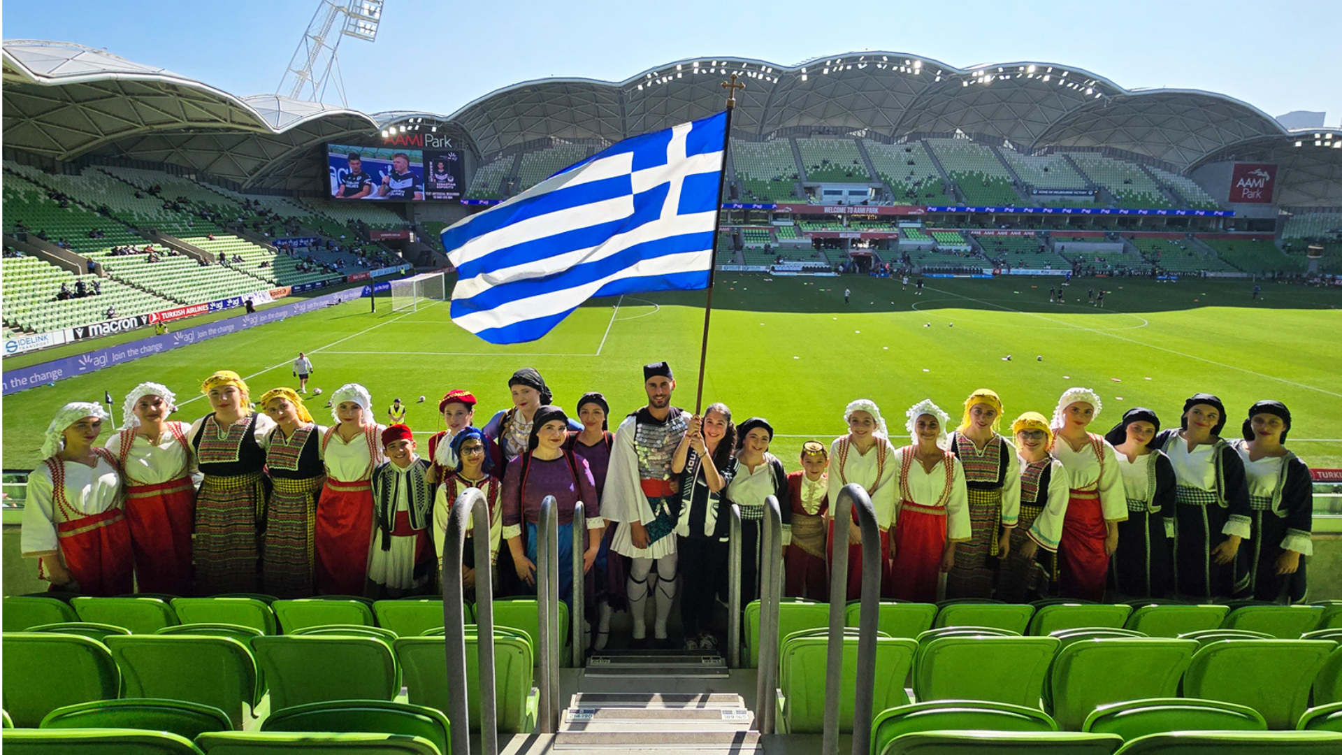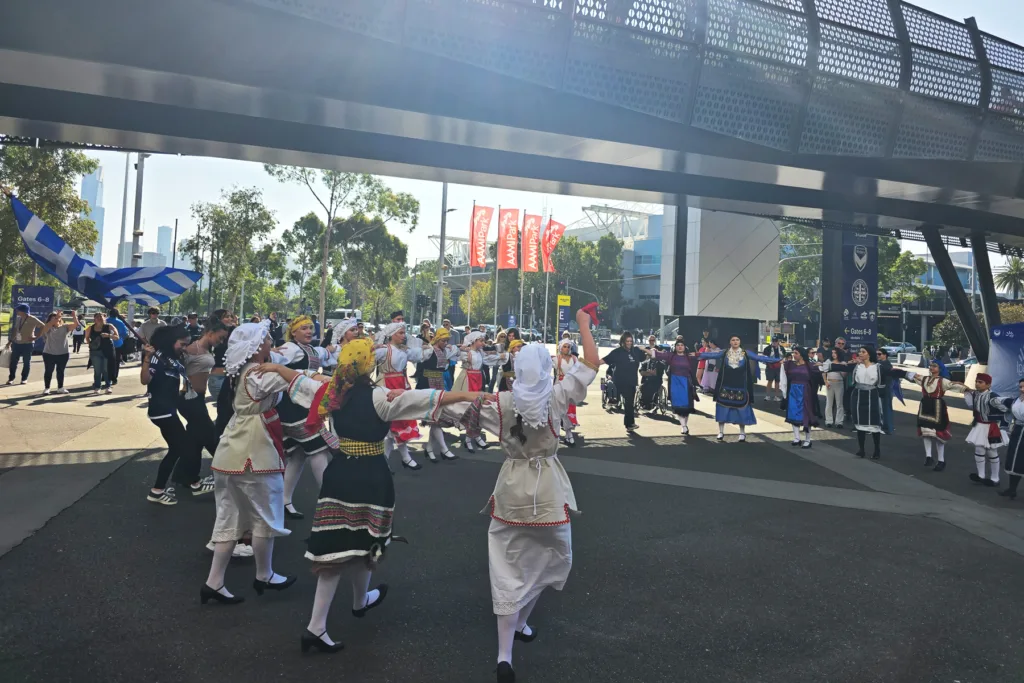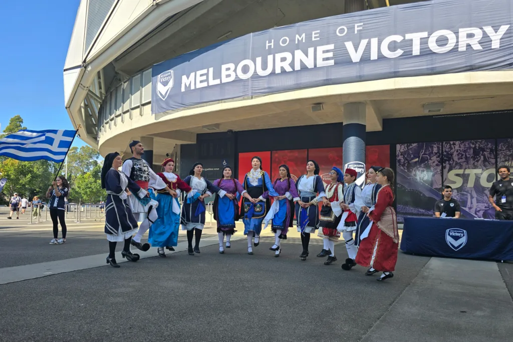 Melbourne Victory’s annual U-NITE Multicultural Round on Saturday, March 21 celebrated Hellenism by featuring Greek dancing by the Manasis School of Greek Dance and Culture as their pre-game entertainment where thousands of spectators appreciated traditional Greek dance.